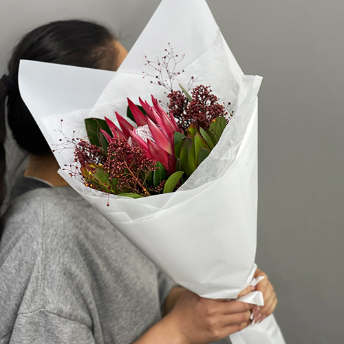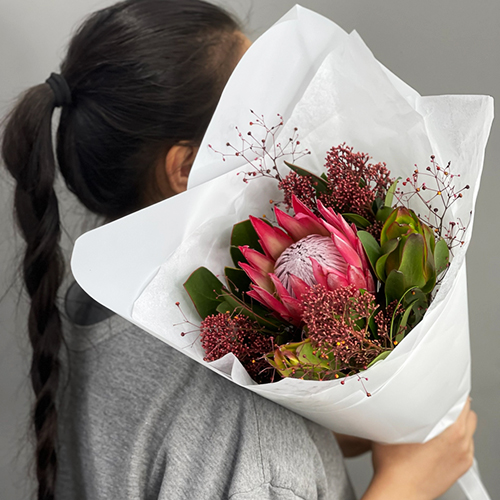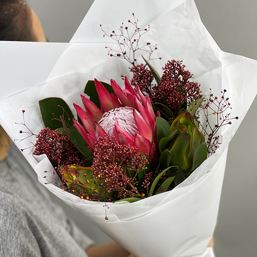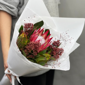Букет "Спешл" из протей, сафари, талинума и скиммии