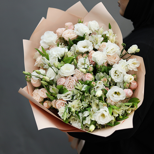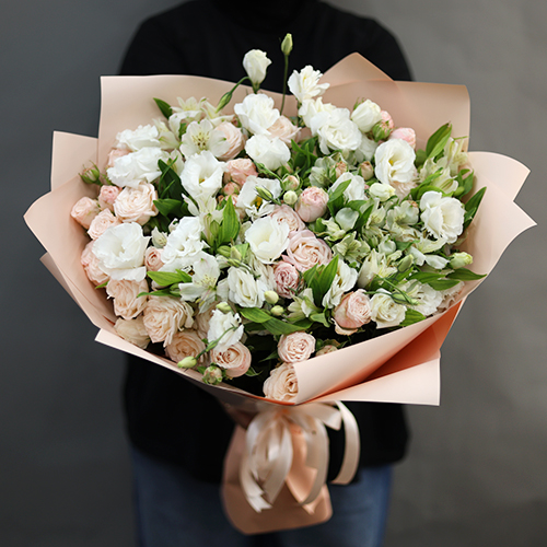 Букет "Полли" из эустом и кустовых пионовидных роз