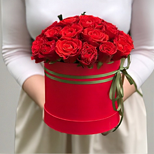 Композиция в шляпной коробке "Коррида" из 21 розы Эль Торо