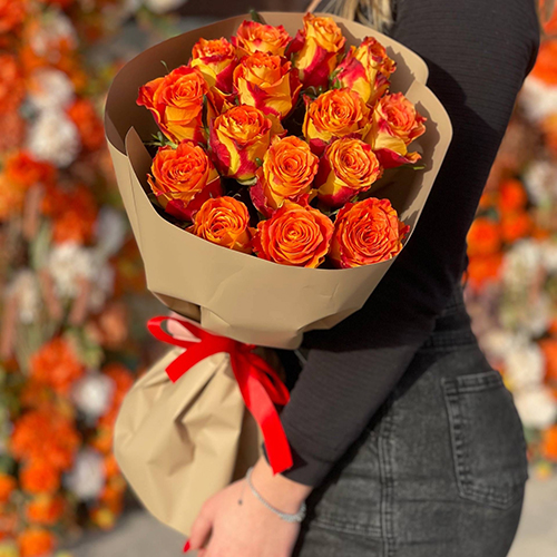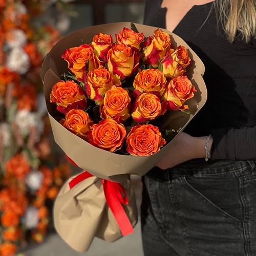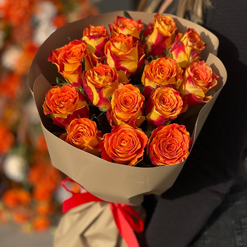 Букет из 15 огненных роз Кения (40 см)