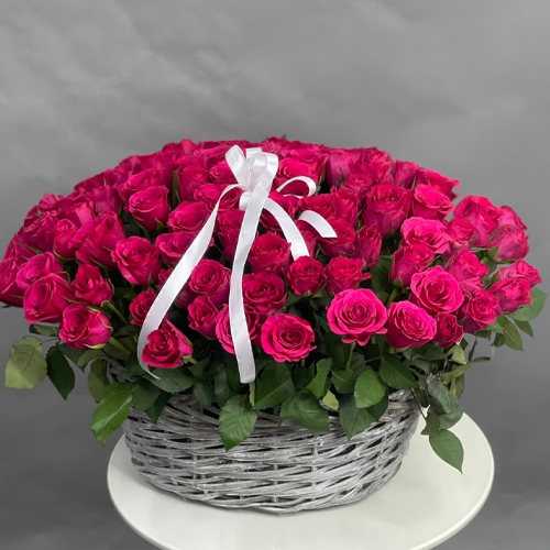Композиция в корзине из 101 малиновой розы (40 см)